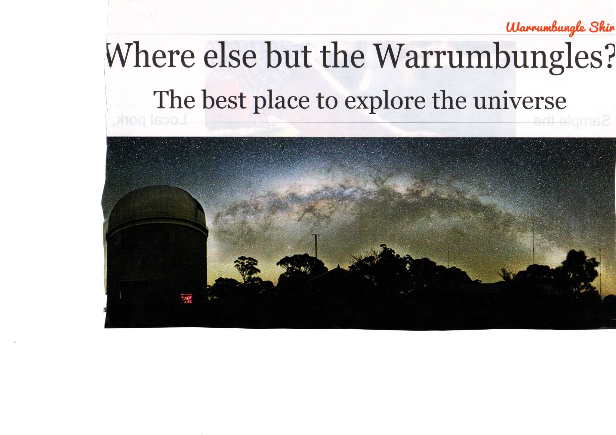 Day Five and six: Coonabarabran where the universe comes a little closer. We will need 2 days to see both the Siding Springs Obsevatory and the Warrumbungles and we hope to get a closer look at the stars from the Milroy visual Observatory.