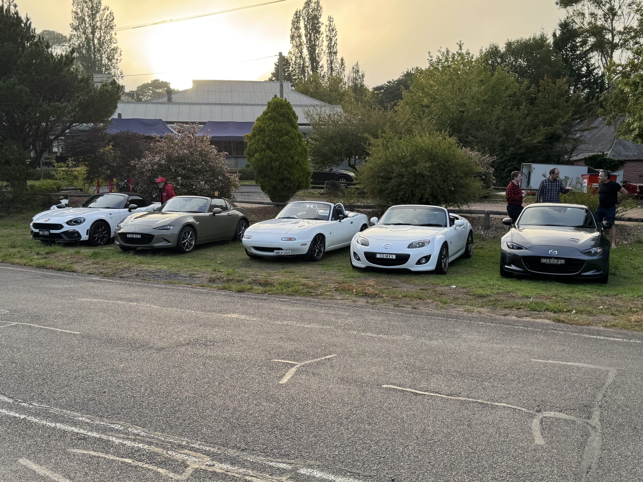 On the approach to Berrima, we found a perfect parking spot where we could line up our MX-5s and display them for everyone to see. We then ordered a long-awaited and well-deserved takeaway coffee before taking to the streets to see the amazing cars on show. While walking around, admiring the variety of vehicles, we met up with five other MX-5 club members who had arranged to meet us there.