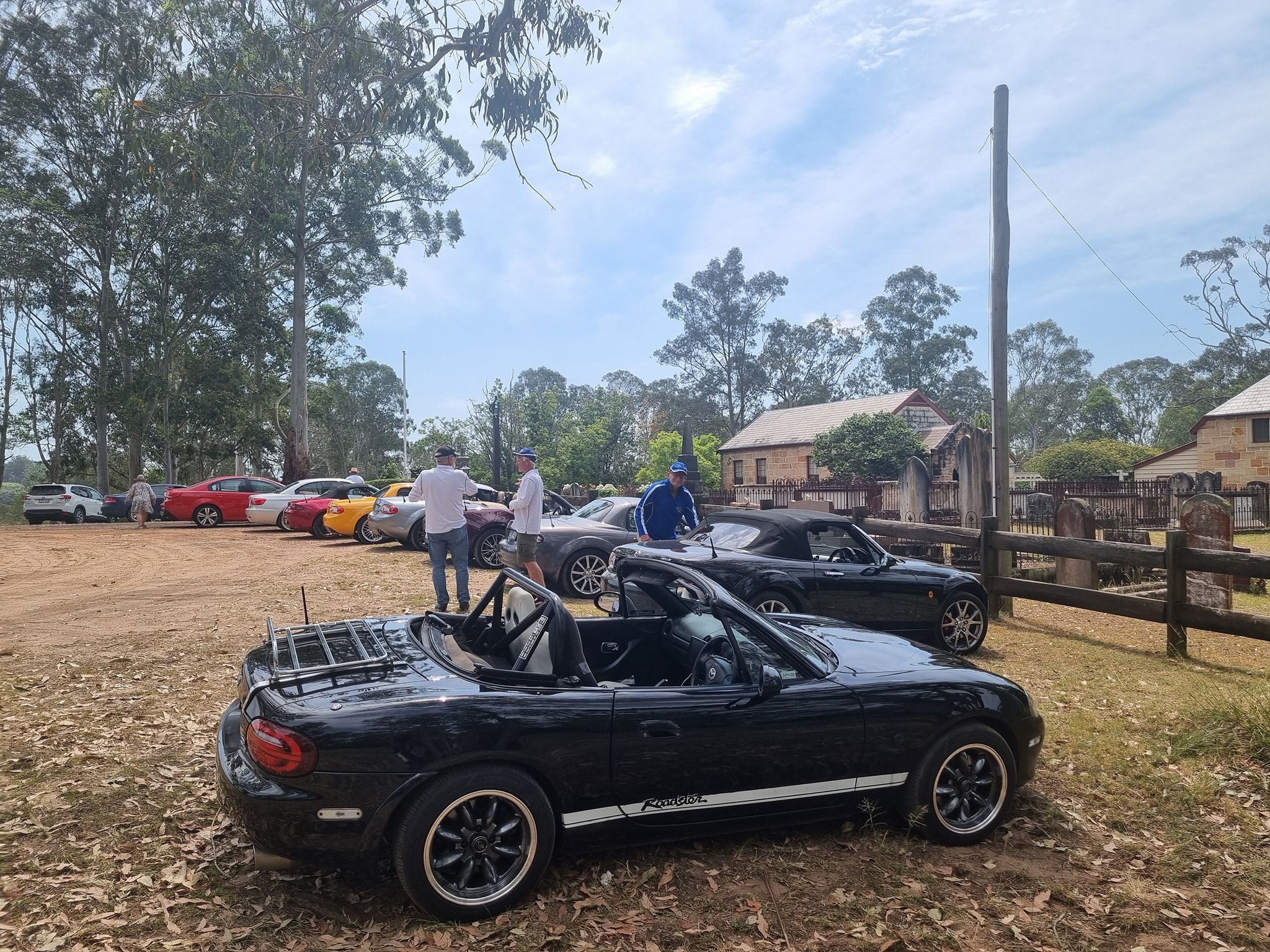 We set off on a beautiful clear morning from Dural with our tops down hoping the weather forecasters were incorrect about the predicted heatwave conditions. Our group of 9 MX5s meandered through the backroads enjoying the drive through the picturesque countryside of Cattai, South Maroota and down to the Sackville Ferry. We managed to get all cars aboard the ferry across the Hawkesbury giving us plenty of time for our break at Ebenezer Church.