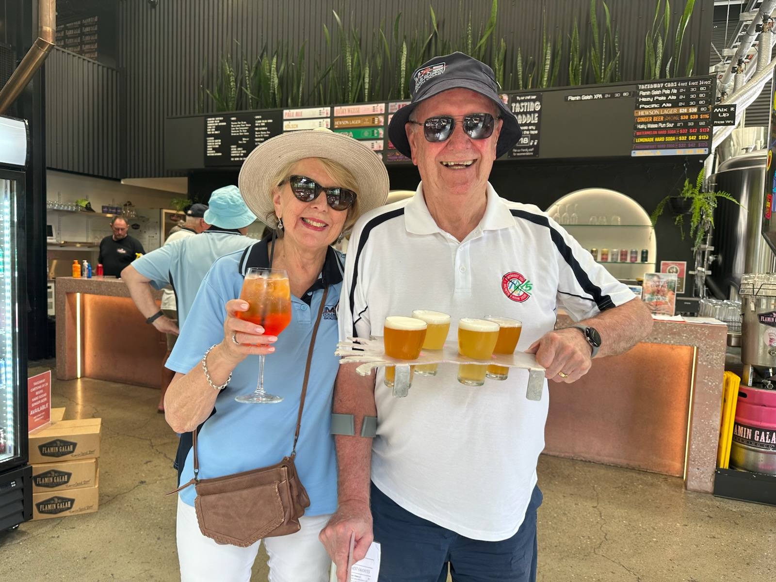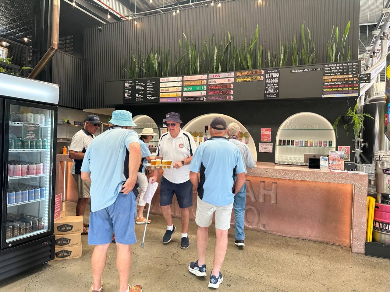At the Flamin’ Galah, lunches were purchased from a food van ‘The Nest.’ Plates were large, quality was high, and several members immediately questioned whether they should have skipped breakfast. Some bravely tackled beer tasting paddles (for research purposes), while others leaned into cocktails or stuck with non-alcoholic options, wisely remembering the drive home.